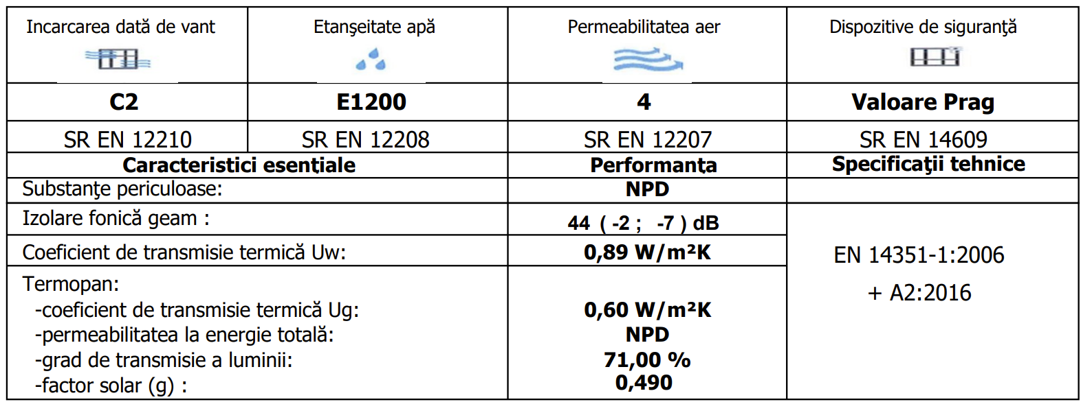 Coeficient de transmisie termica Uw = 0.89 W/m2K