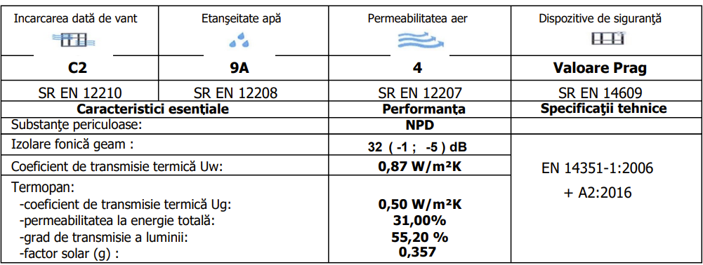 Coeficient de transmisie termica Uw = 0.87 W/m2K