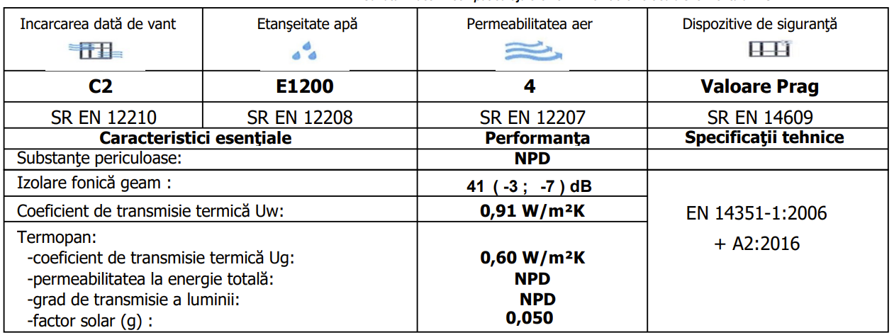 · Coeficient de transmisie termica Uw=0.91 W/m2K