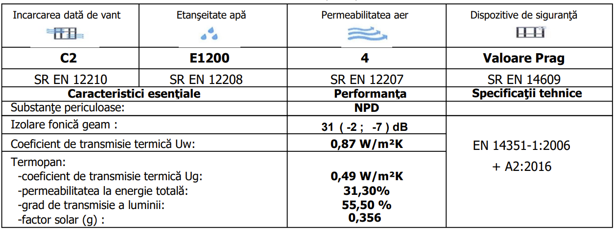 · Coeficient de transmisie termica Uw= 0.87 W/m2K