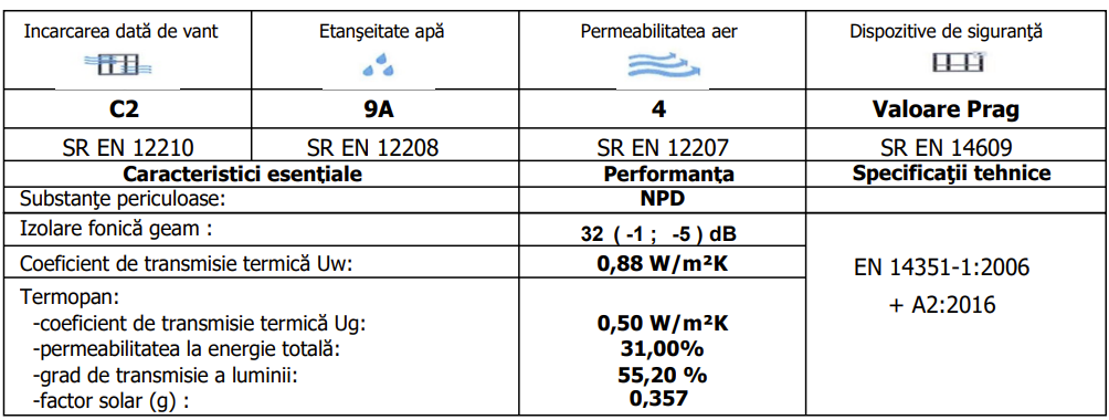 Coeficient de transmisie termica Uw = 0.88 W/m2K